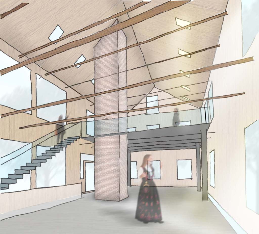Gulhuset is a category B protected heritage building under Riksantikvaren. As a strategy to draw attention to it, all internal walls and floors will be removed except the load-bearing structure, the roof and beams. The floors will be detached from this old structure and put onto a new, very light and thin steel structure, making it a museum exhibiting itself.